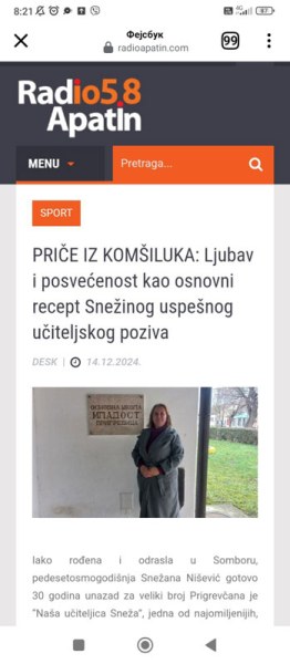 14. 12.2024. Интервју за Радио Апатин 105,8 са учитељицом Снежаном Нишевић из наше ОШ“ Младост“